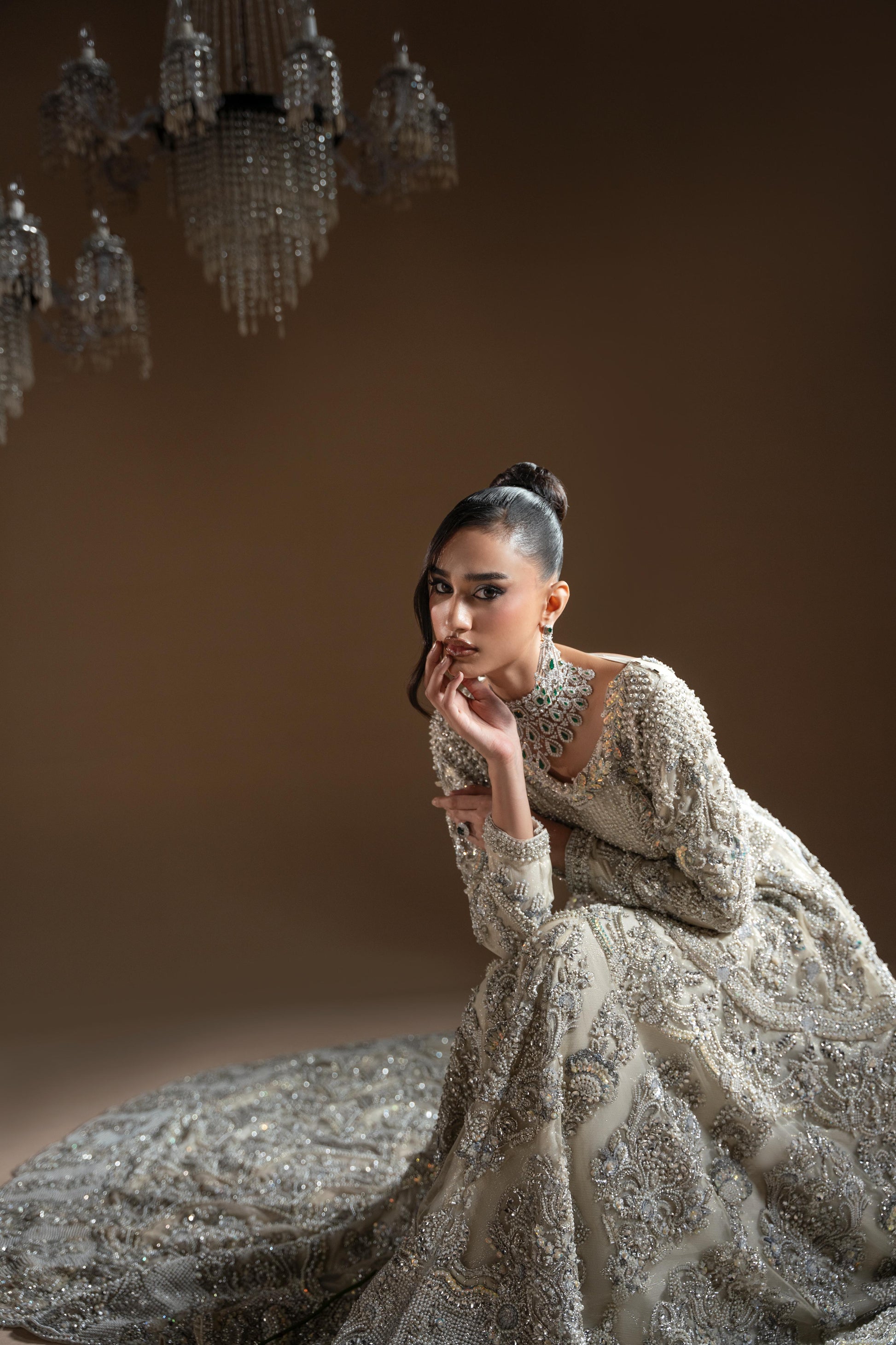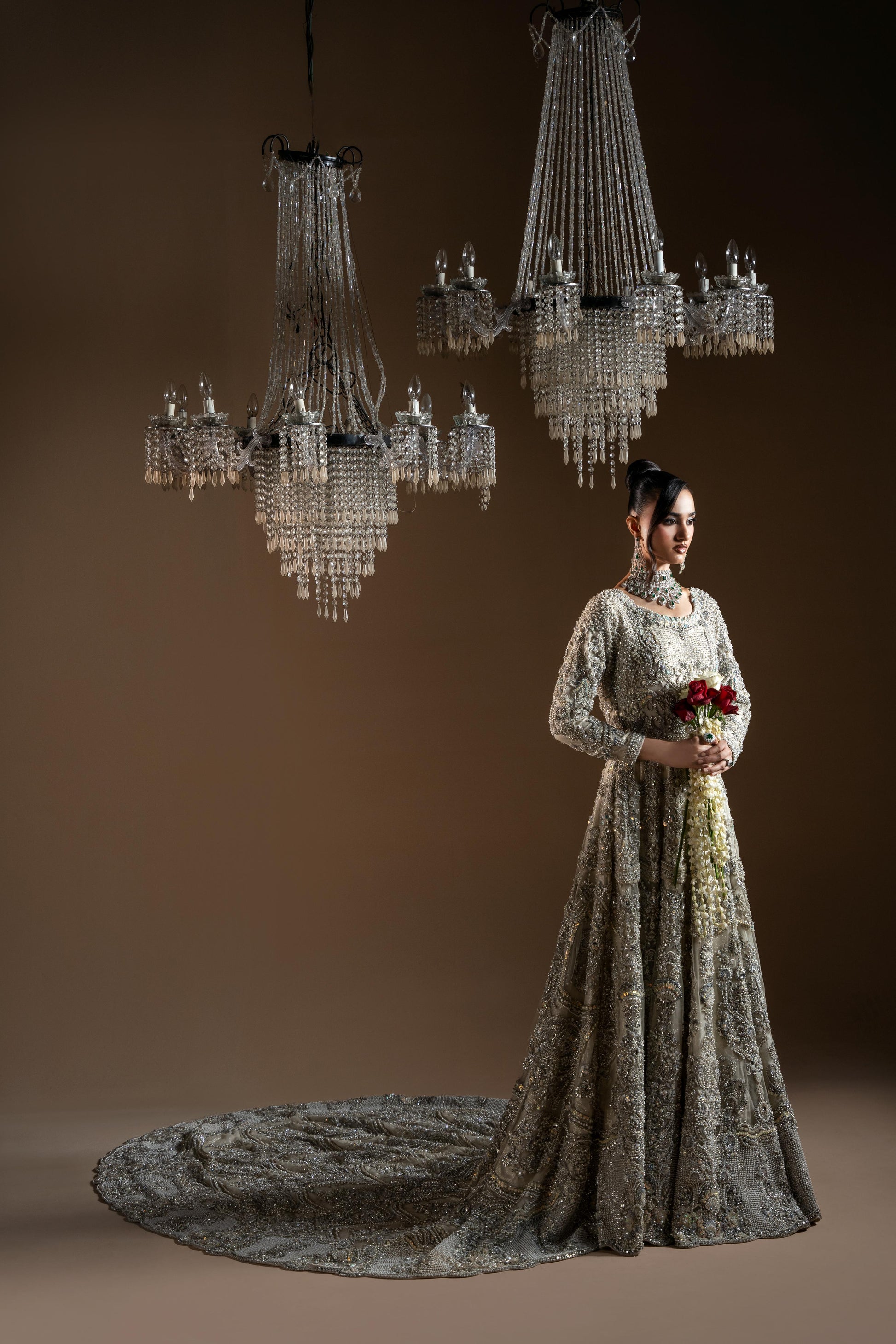 The payment for any purchase is non-refundable. All our outfits are tailor-made according to your size and preferences. We use premium fabrics, and our highly skilled artisans work for several weeks on each dress to ensure every detail is perfected.